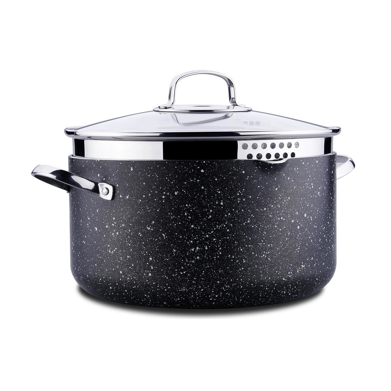 قابلمه کرکماز مدل گلکسی GALAKSI A2957 محصول جدید برند KORKMAZ ساخت کشور ترکیه با سایز 14.5*28 سانتی متر و گنجایش 8 لیتر می باشد. این قابلمه با ظاهری زیبا و رنگ مشکی می تواند زینت بخش آشپزخانه شما باشد. این محصول با فناوری سازگار با محیط زیست ساخته شده و مواد تشکیل دهنده آن قابل بازیافت هستند و به محیط زیست آسیبی نمی رسانند. آشپزی با قابلمه کرکماز مدل 2957 تولید گاز مضر PFOA نمی کند و حاوی فلزات سنگین مضر سرب و کادمیوم نیست و به سلامت انسان را به خطر نمی اندازد.
